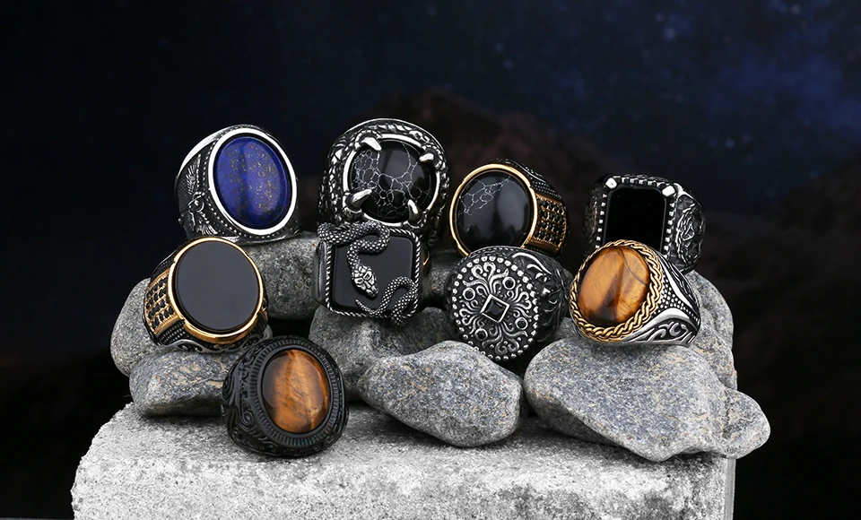 An iconic 2024 addition to Gravín’s signature line — a curated collection of vintage-style stainless steel rings embedded with Black Zircon and Tiger Eye stones. Each piece blends masculine elegance with bold energy, perfect for men (or women) who embrace symbolism, power, and timeless design. Durable, elegant, and built to leave an impression.