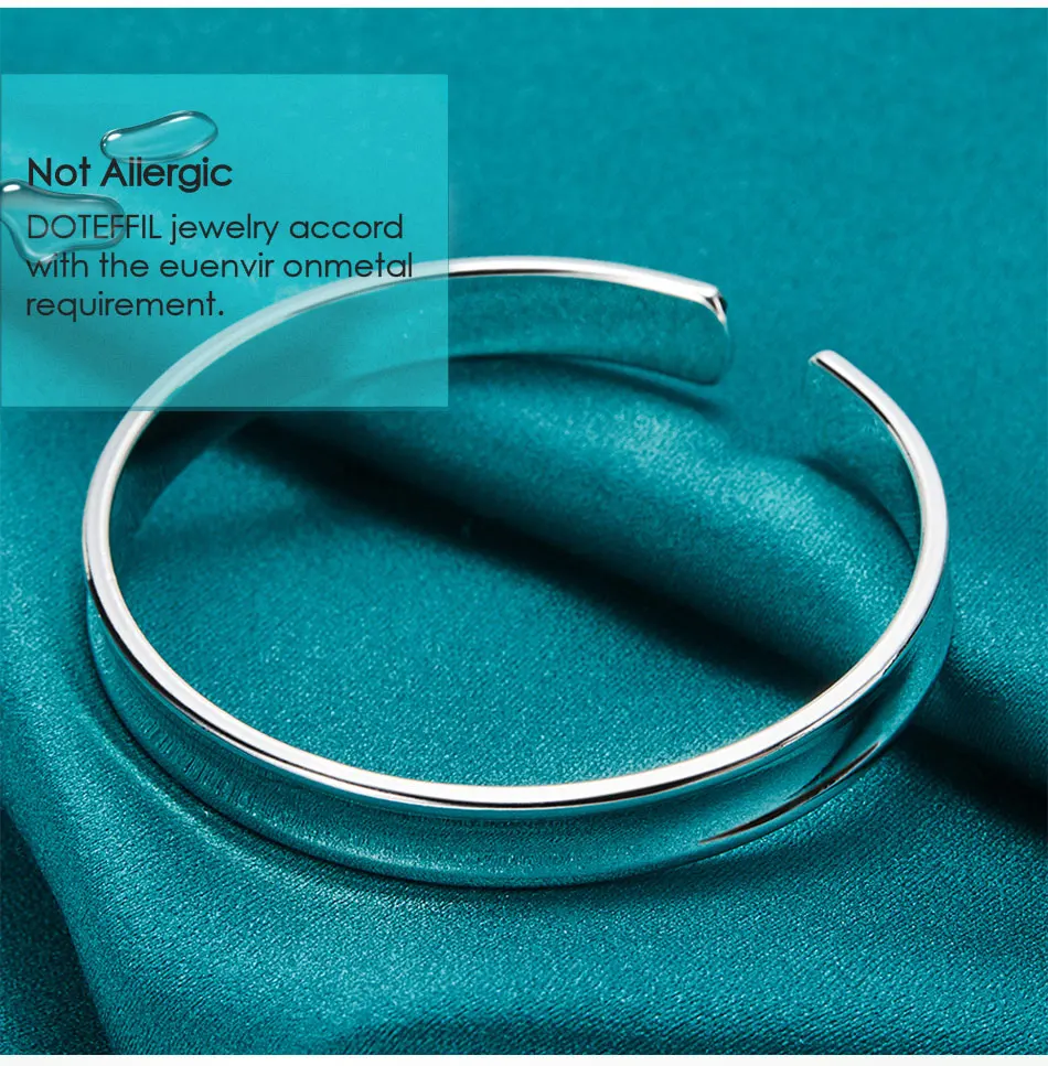 A clean, timeless symbol of elegance. Made from genuine 925 sterling silver, this minimalist bangle fits both men and women with a refined sense of style. Smooth, simple, and silently powerful.