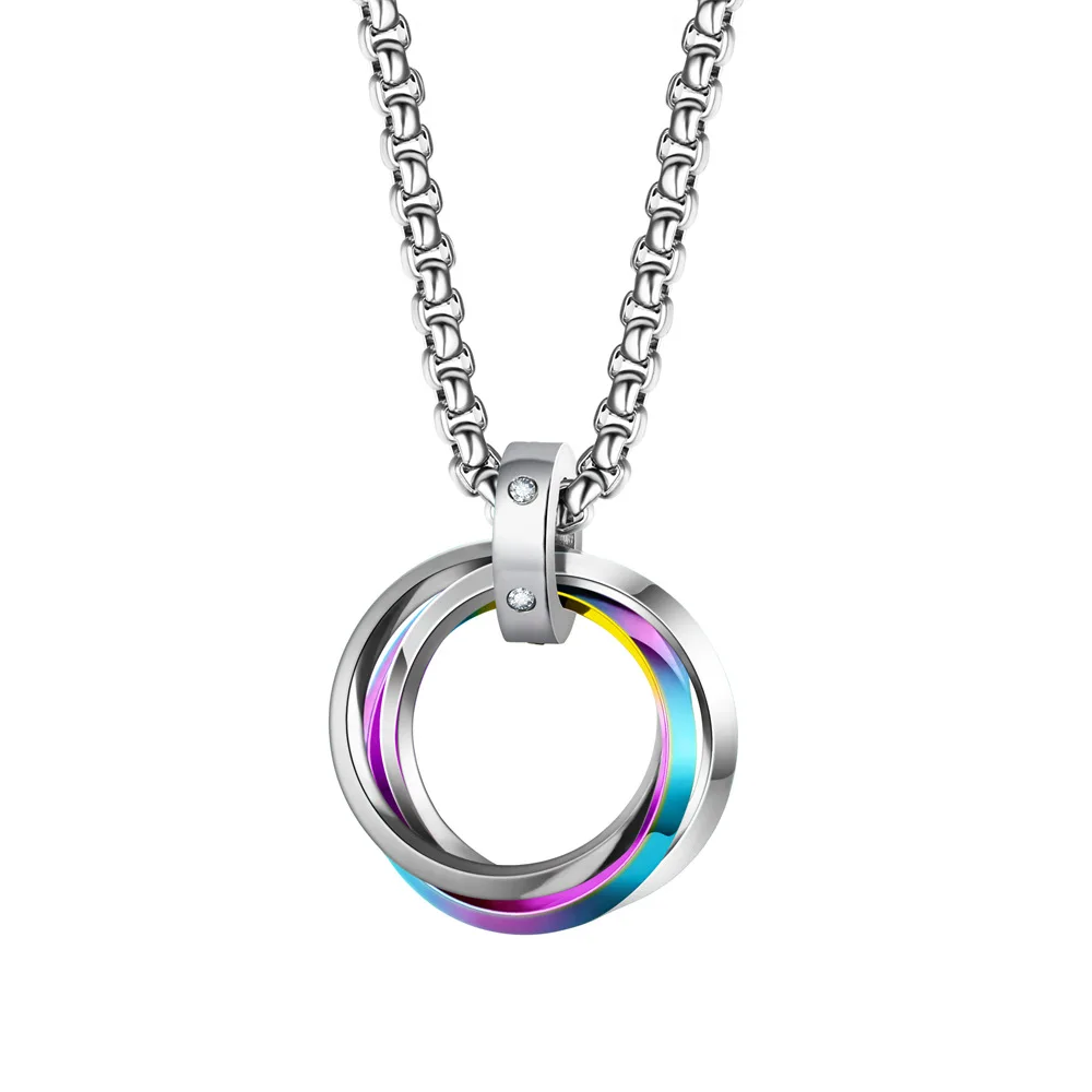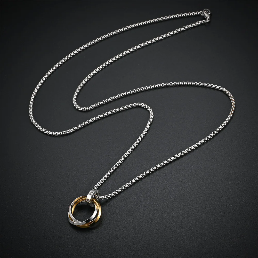 Triple Ring Pendant Necklace – Titanium Steel Hip-hop Chain for Men