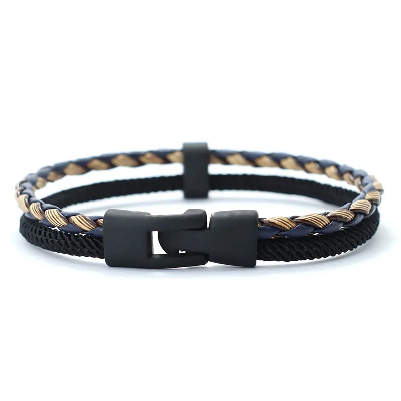 Effortlessly stylish, this double-layer braided bracelet features a smooth duo-tone weave and a matte magnetic clasp. Lightweight, versatile, and crafted for the modern man.