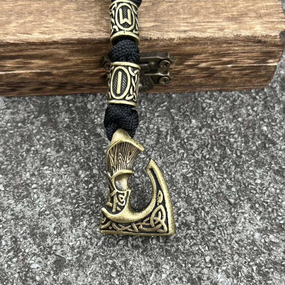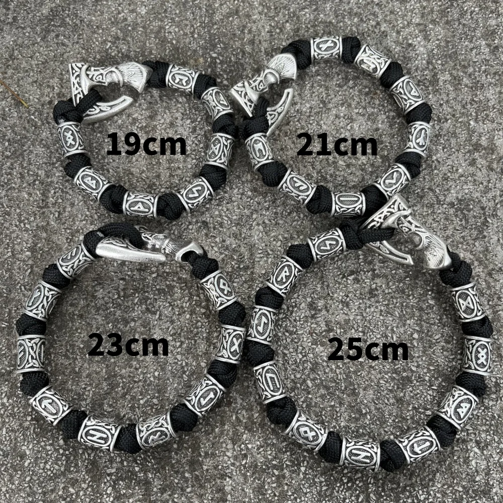 Wield the power of the ancients. This Viking-inspired paracord bracelet features a finely crafted axe-shaped clasp and engraved Norse runes. Built for strength, adventure, and style – whether you’re hiking a mountain or conquering the city.